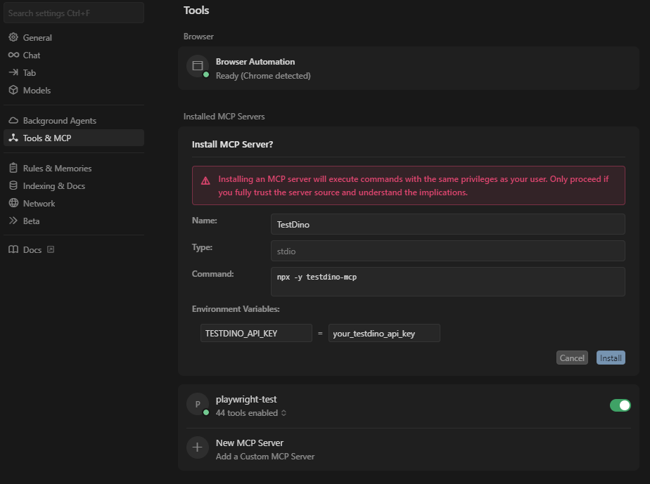 | Cursor | Repo aware edits and fast suite expansion | Pin your Playwright conventions and ask Cursor to generate new tests inside that structure | Stream or upload runs into TestDino so every failure has evidence, not guesswork |