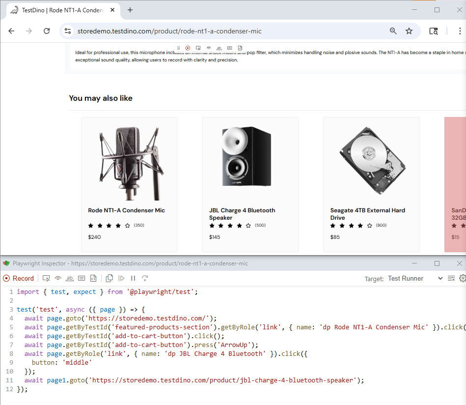 | Playwright Codegen | Fast drafts from real clicks | Run npx playwright codegen, record the flow, copy the test | Refactor locators, add asserts, run in CI and validate failures with traces and screenshots in TestDino |