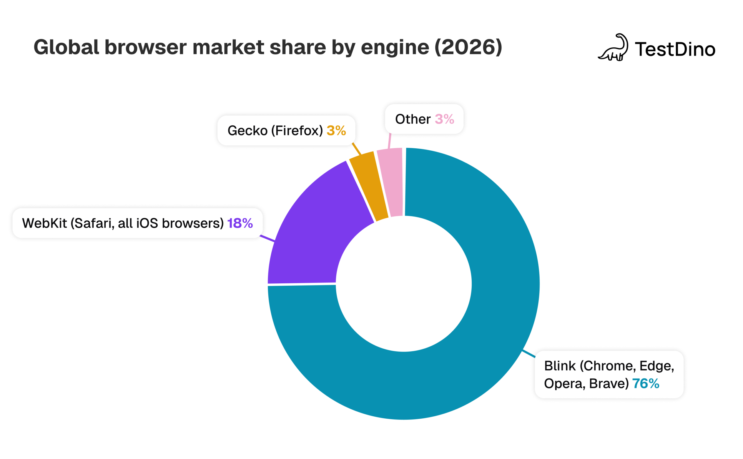 Tip: Don't test "Chrome, Edge, and Brave" and call it cross-browser testing. All three use Blink. You're testing one engine three times. Test Chromium + WebKit + Firefox to cover all three engines.