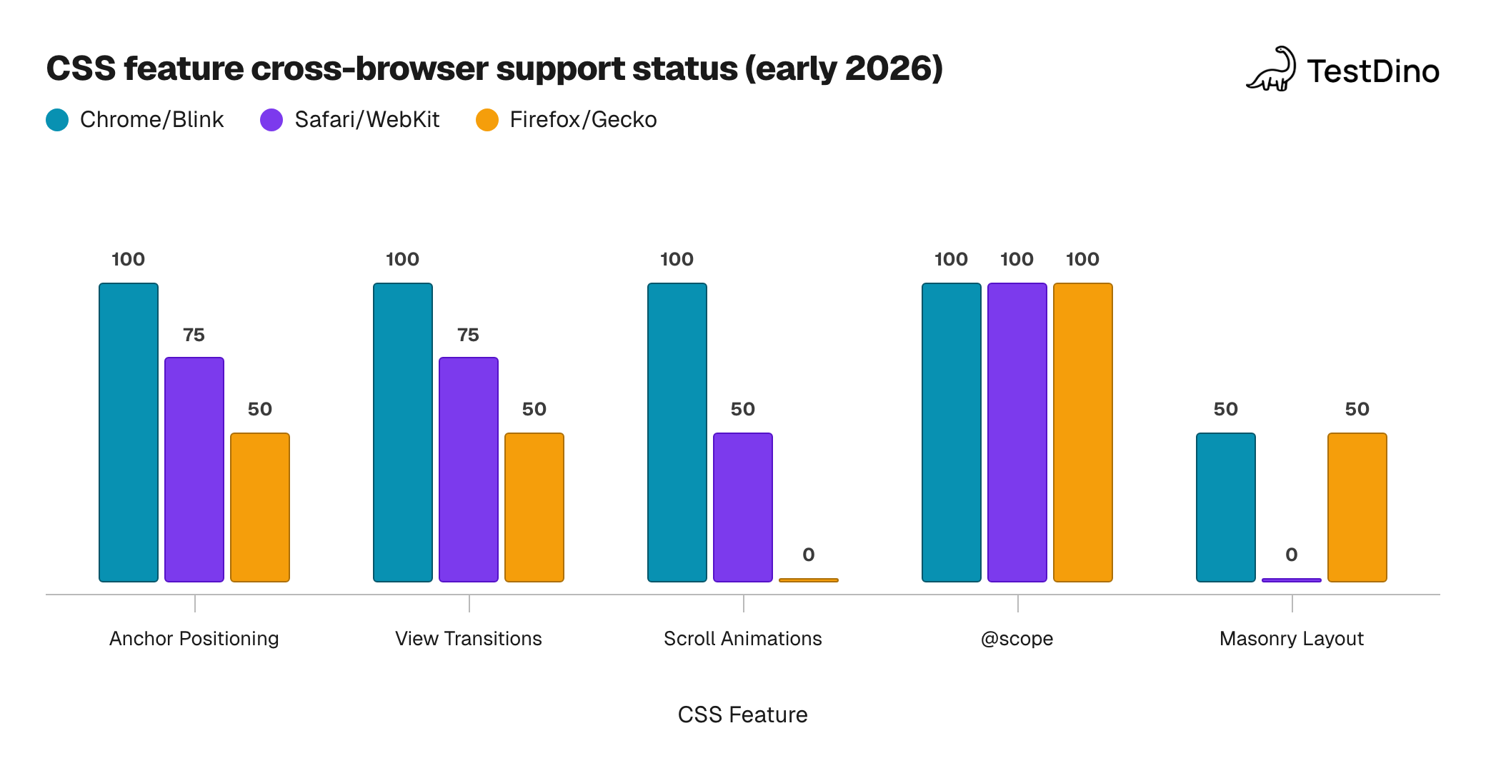 This matters for testing teams because these features will behave increasingly consistently as 2026 progresses. If you're avoiding certain CSS features due to browser inconsistencies, the Interop 2026 focus list tells you which ones will become safe to use within the year.
