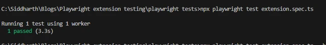 This opens the Playwright Inspector where you can pause, step through, and inspect the browser state at every point. You can see whether your extension loaded correctly by checking the extensions page at chrome://extensions.
