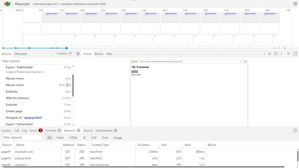 According to research on why Playwright tests fail, timing issues and stale selectors are the top root causes. Extension testing amplifies both because you are dealing with multiple execution contexts (popup, content script, background worker) that communicate asynchronously.