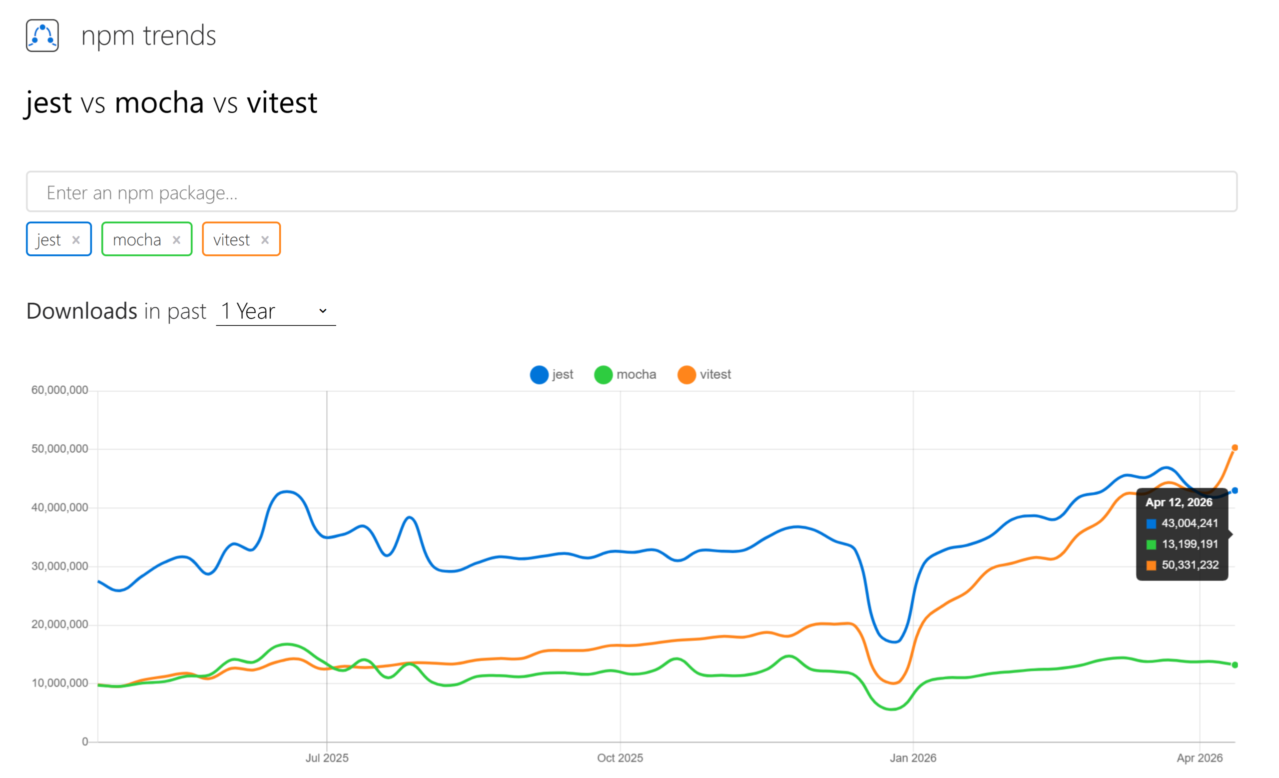 The trend behind these numbers matters more than the raw counts. Jest's usage has plateaued. Vitest's has grown over 400% since 2023. Mocha continues a steady decline year over year. The testing framework market data from npm confirms this same trajectory.