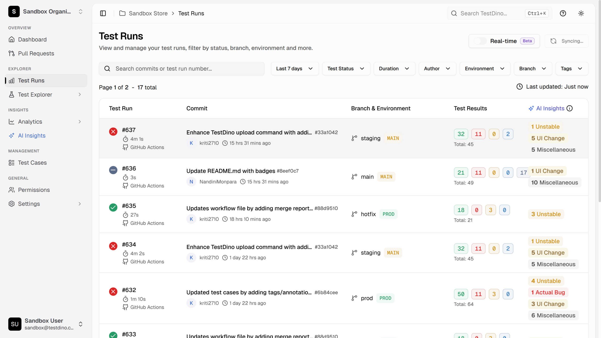 Platforms like TestDino give you a single dashboard that surfaces flaky tests, failure categories, and run-over-run trends so you can catch slowdowns before they compound.