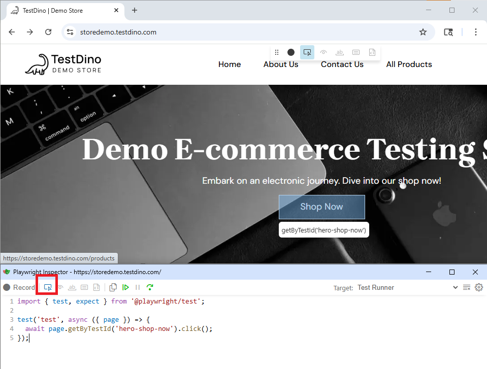 Use npx playwright codegen https://storedemo.testdino.com/ to auto-generate locators by recording interactions.