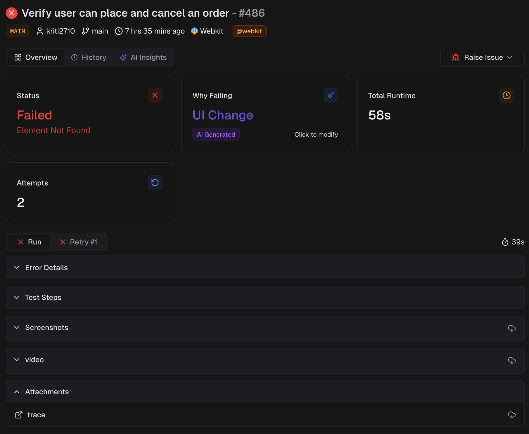 | Failure classification | ❌ You read the error message | ✅ AI categorizes: bug, flaky, infrastructure |