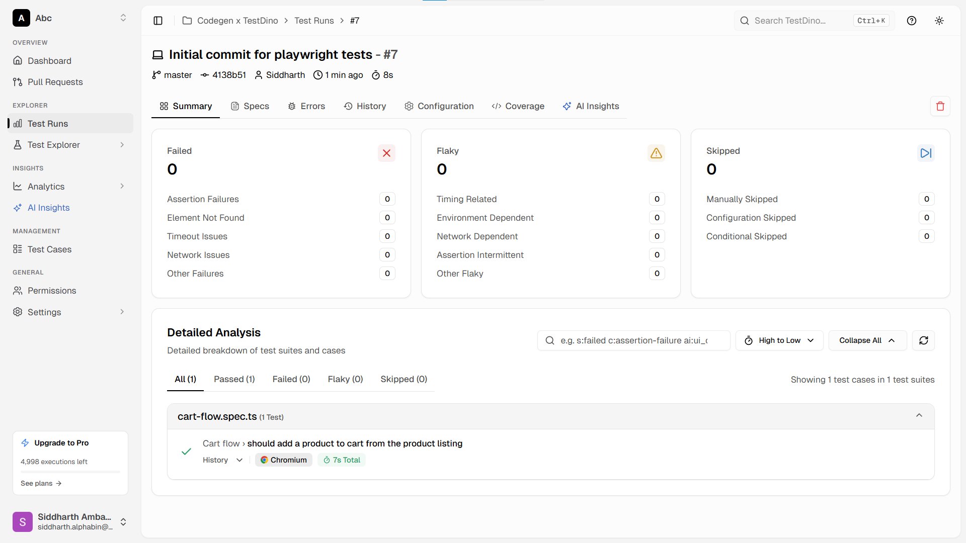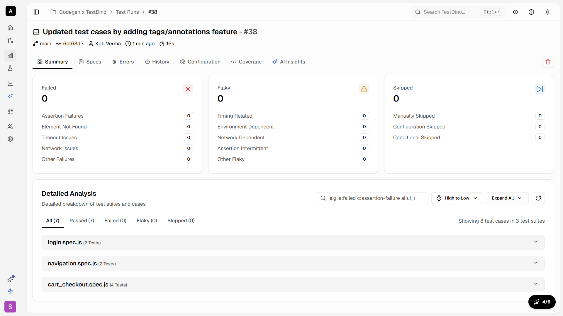 When you pair it with TestDino for CI reporting and flaky test analysis, you get a complete workflow. Tests get generated, tracked, and auto-repaired. Your dashboard shows real trends, not just the last run.