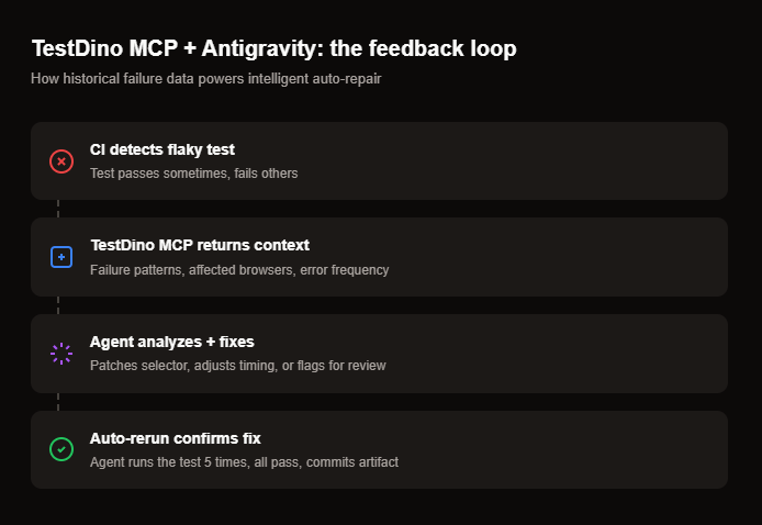 Here is how to combine TestDino MCP with Antigravity agents to fix flaky tests automatically.