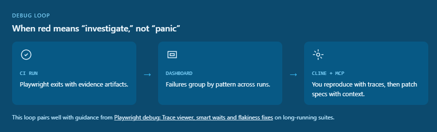 For hands-on debugging habits, Playwright debug: Trace viewer, smart waits and flakiness fixes stays the right companion when a failure is hard to reproduce locally.