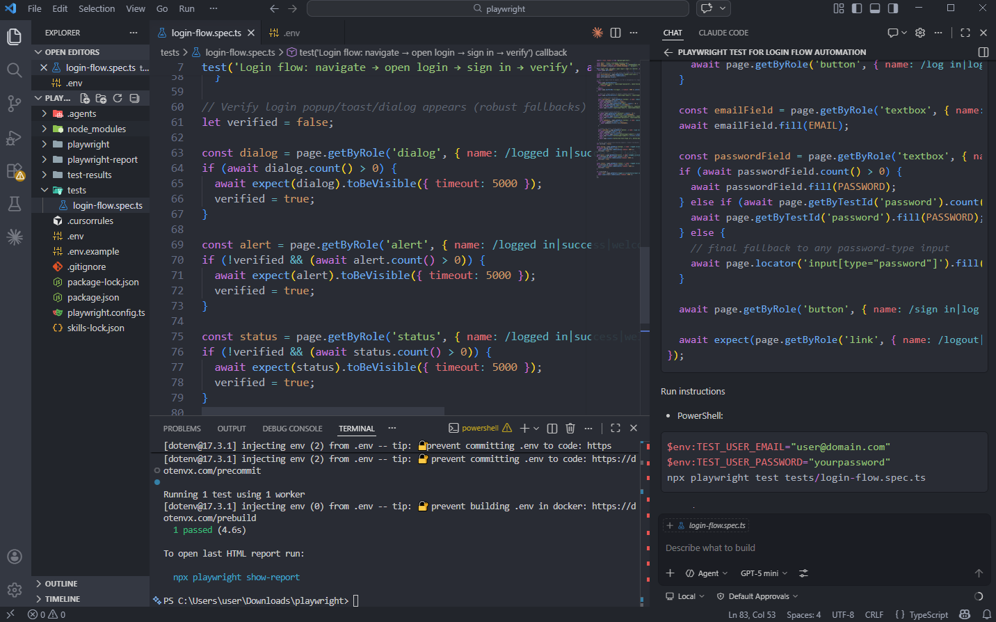 Run the test locally with npx playwright test tests/auth/login-flow.spec.ts --headed to verify it passes