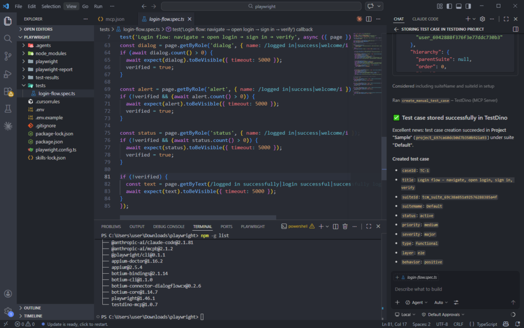 For Playwright testing, this matters because test generation is not just about writing code. It is about writing code that matches your project structure, uses the right locator strategies, and runs reliably in CI.